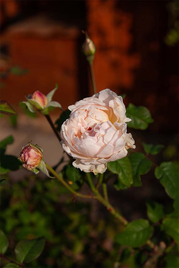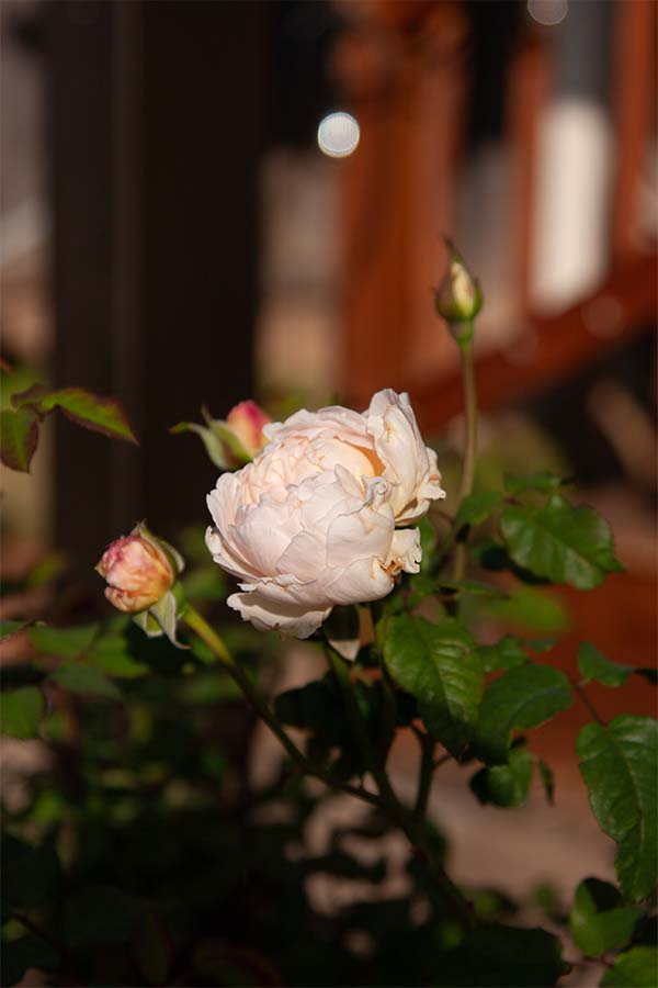 The palate of plants in the beds and on the eight-foot bull wire trellises is always changing. With plenty of sun, there’s plenty of color. Sweetly scented David Austin Roses in one bed complement a Natchez Crepe Myrtle and fall-blooming mums in another. Slender Japanese Yews contrast the Mystic Spires Salvia and the climbing Star Jasmine. A bed decimated by severe weather is merely another opportunity to experiment with a new variety or a different interesting plant. So, many of the current plantings are less than three years old.